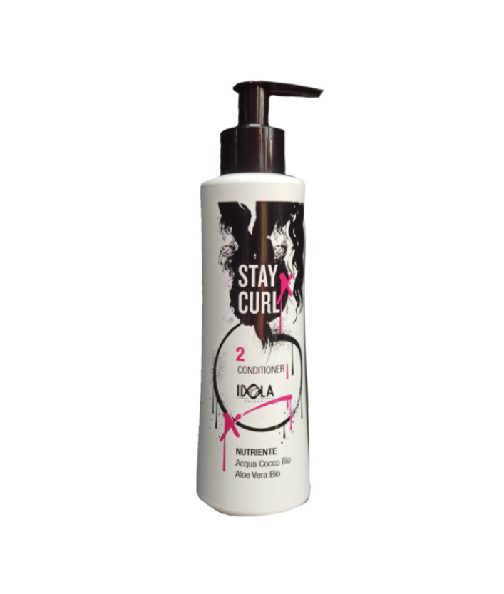Il Conditioner Stay Curl 2, con la sua nuova formulazione di origine vegetale arricchita di Acqua di Cocco Bio e Aloe Vera Bio, svolge una efficace azione condizionante ed elasticizzante, creando volume naturale e conferendo lucentezza e setosità al capello.